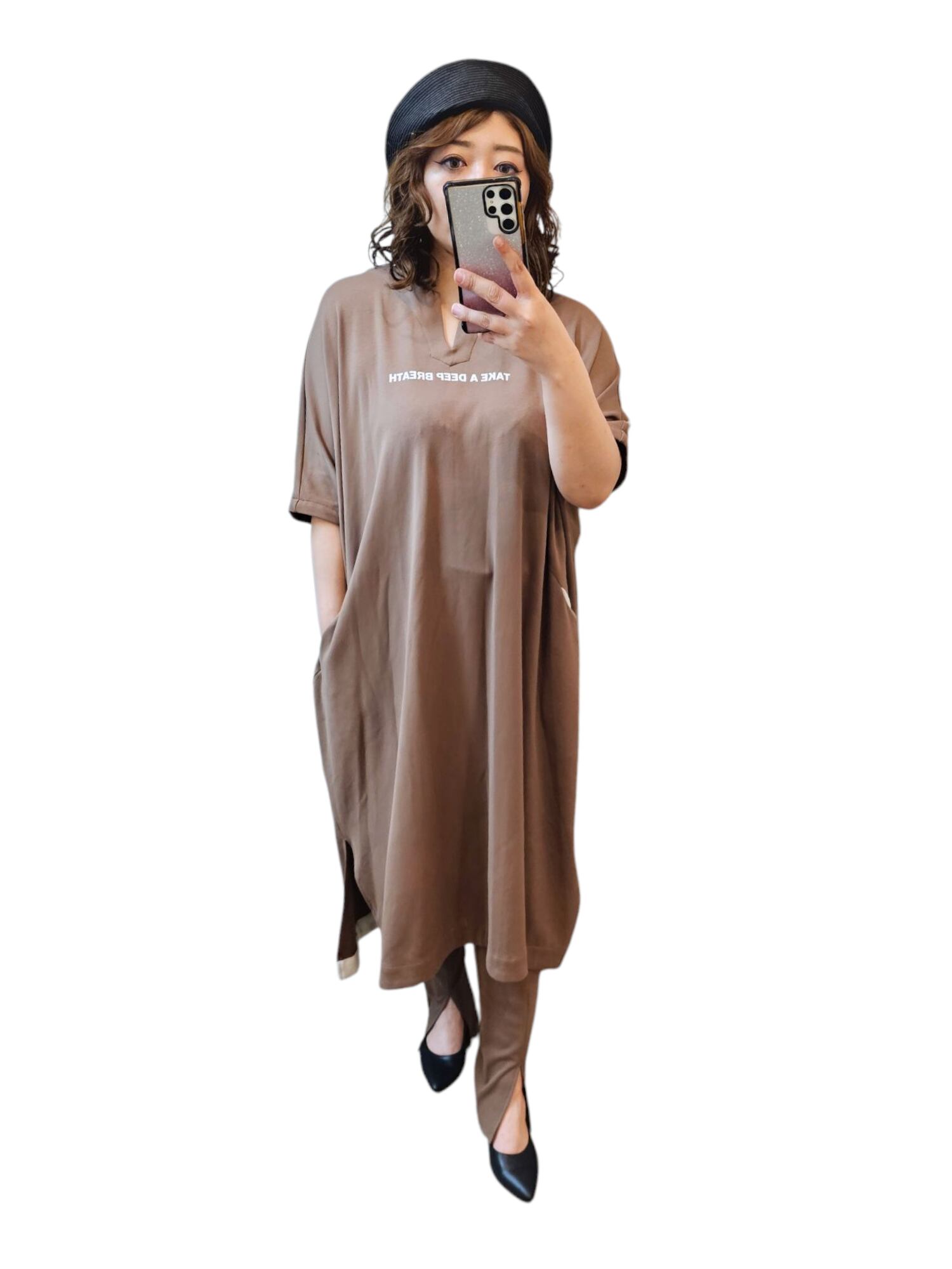 【ayane アヤン】ワンピース丈キーネックロゴロンT