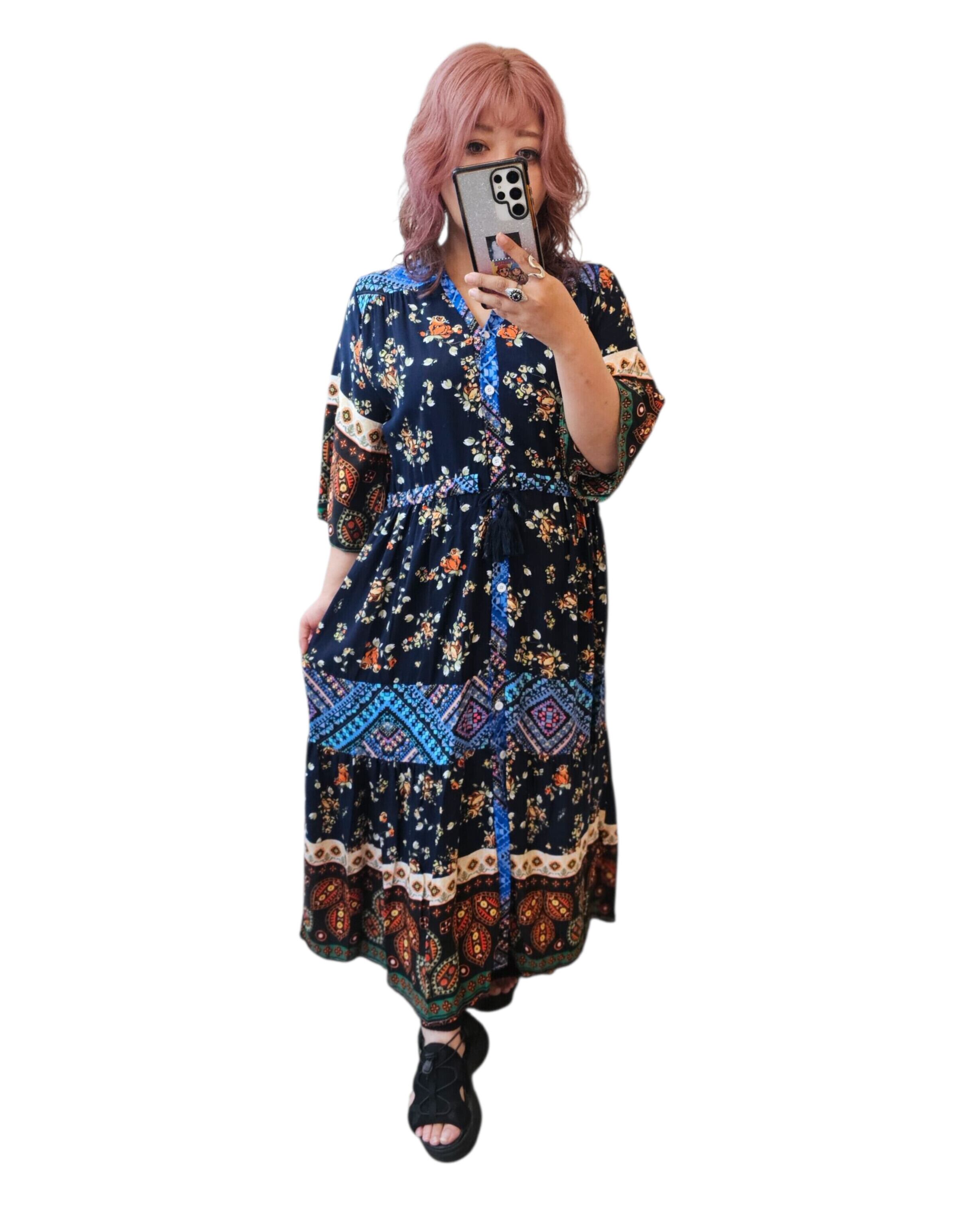 エスニックフリンジベルト前開きワンピース