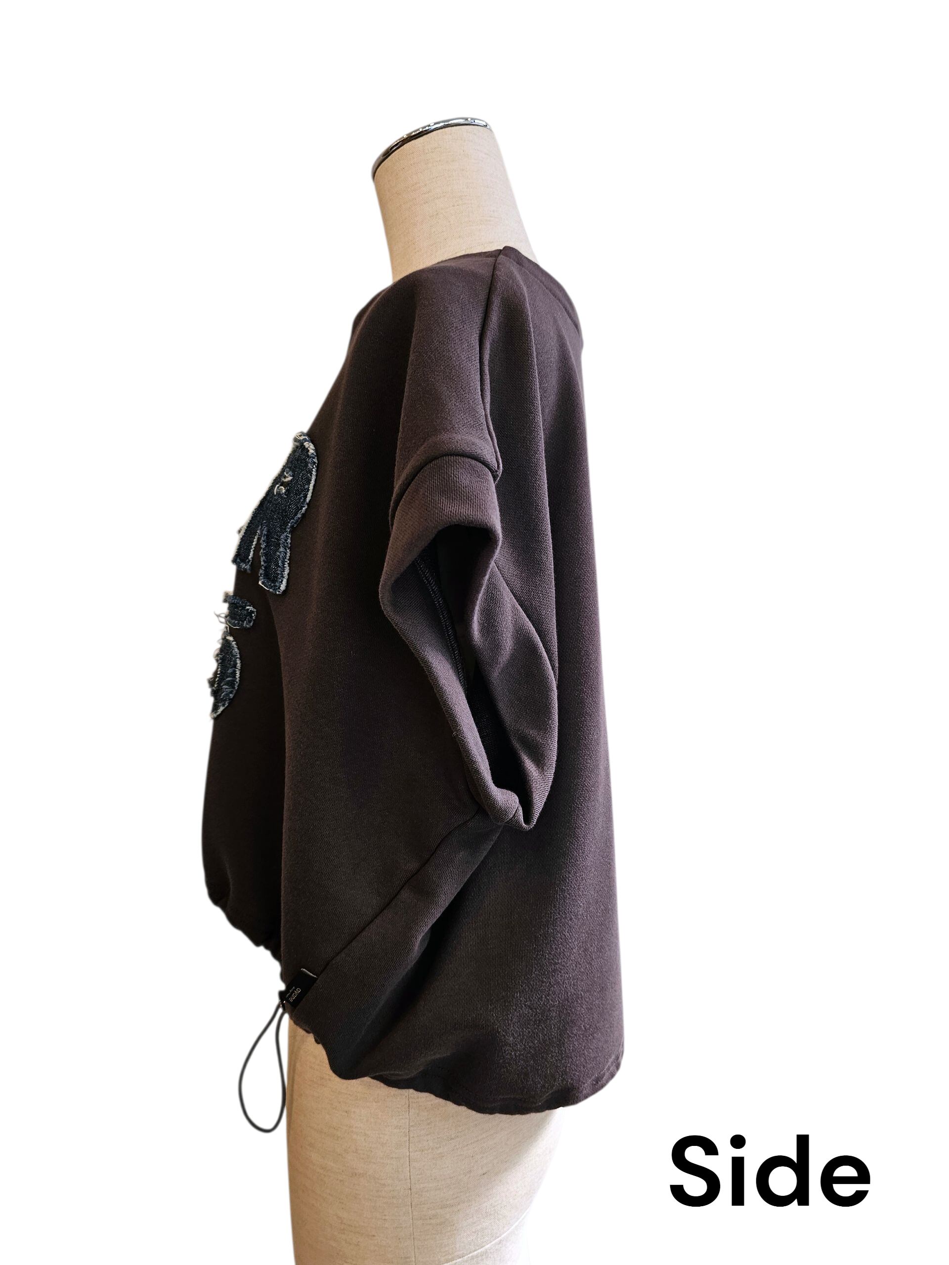 【ayane アヤン】デニムロゴパッチショート丈プルオーバー