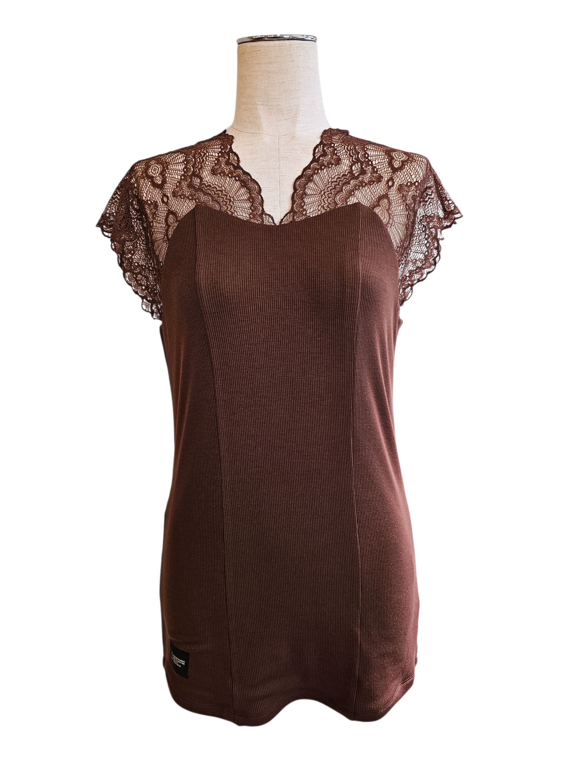 繊細なレースが美しく、柔らかいリブ生地が優しく体を包み込んでくれます。