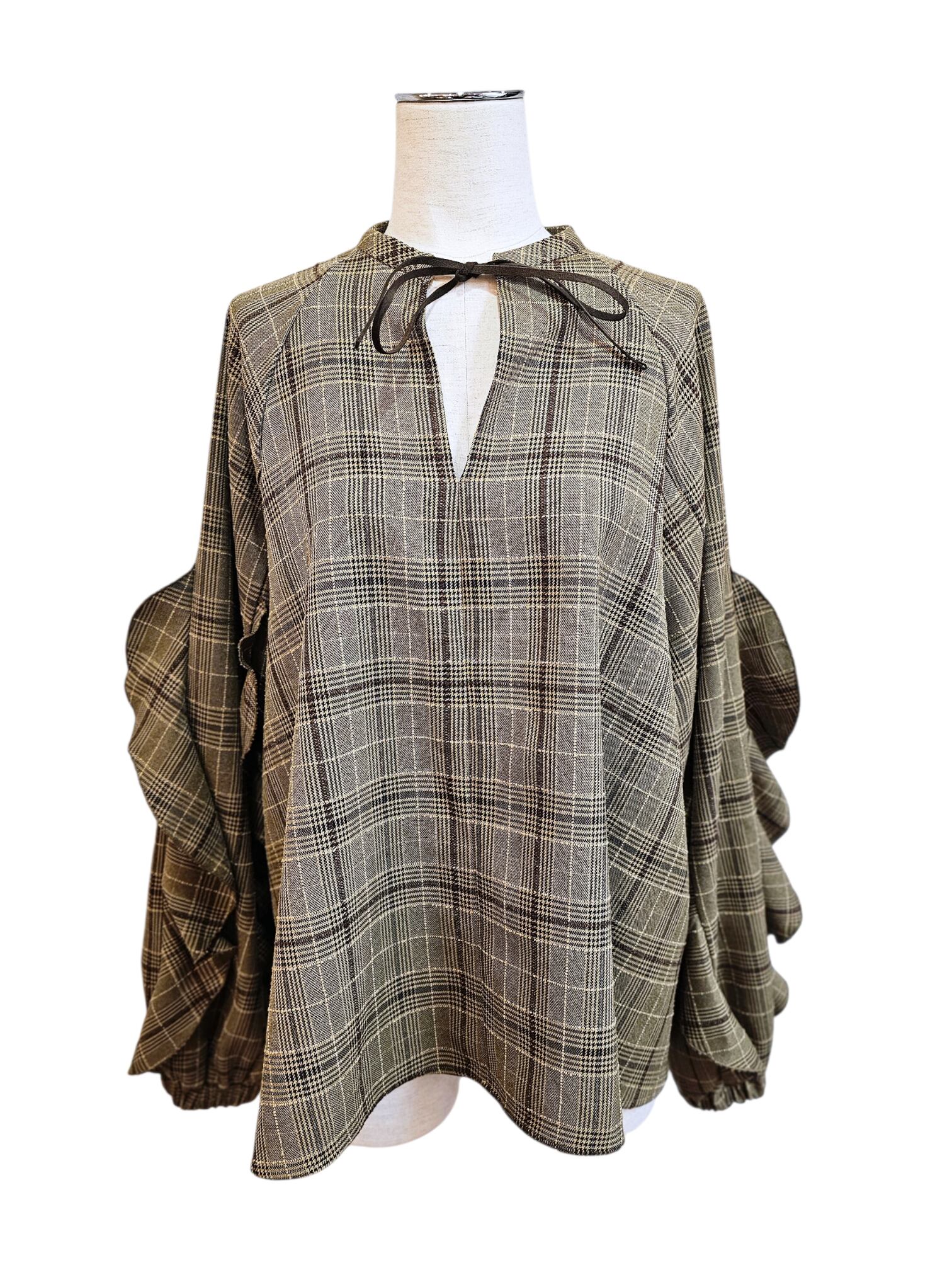 日本製の良質な生地を使った、おしゃれなグレンチェックのボウタイブラウスです。