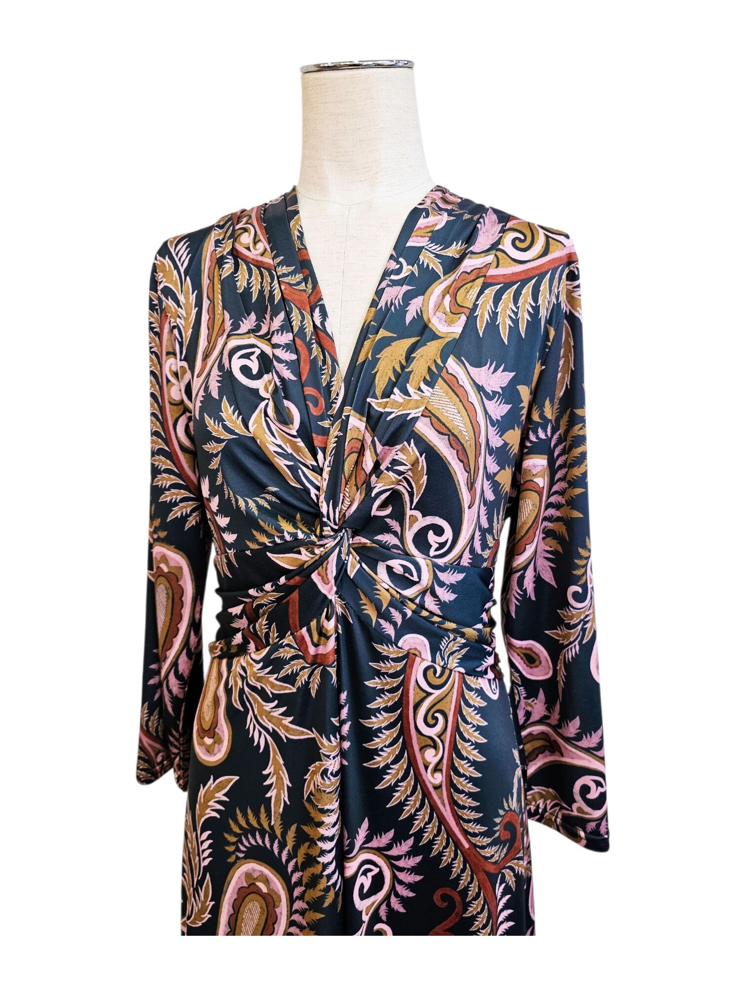 胸下のツイストデザインによって、着用するだけで胸が立体的に美しくなる、魔法のワンピースです。