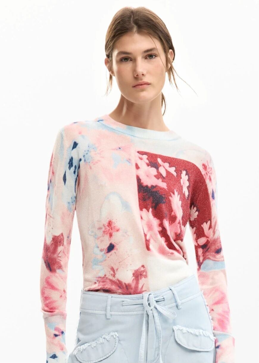 スペイン【Desigual デシグアル】ラメ混花柄スプリングニット
