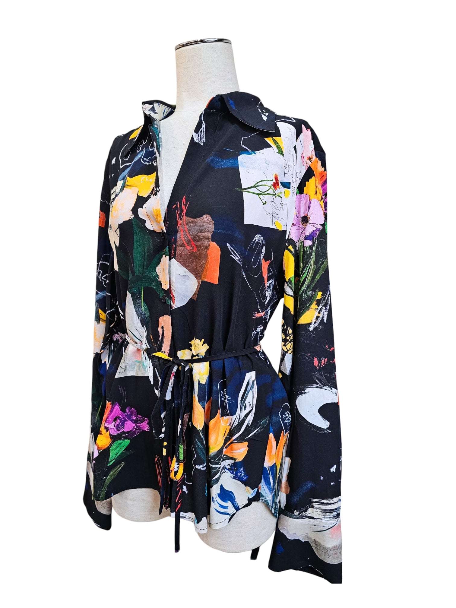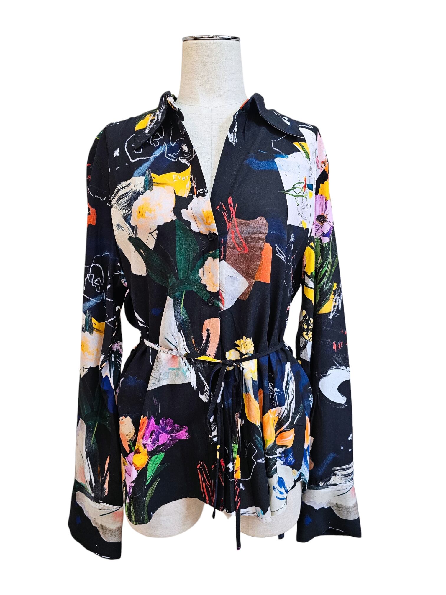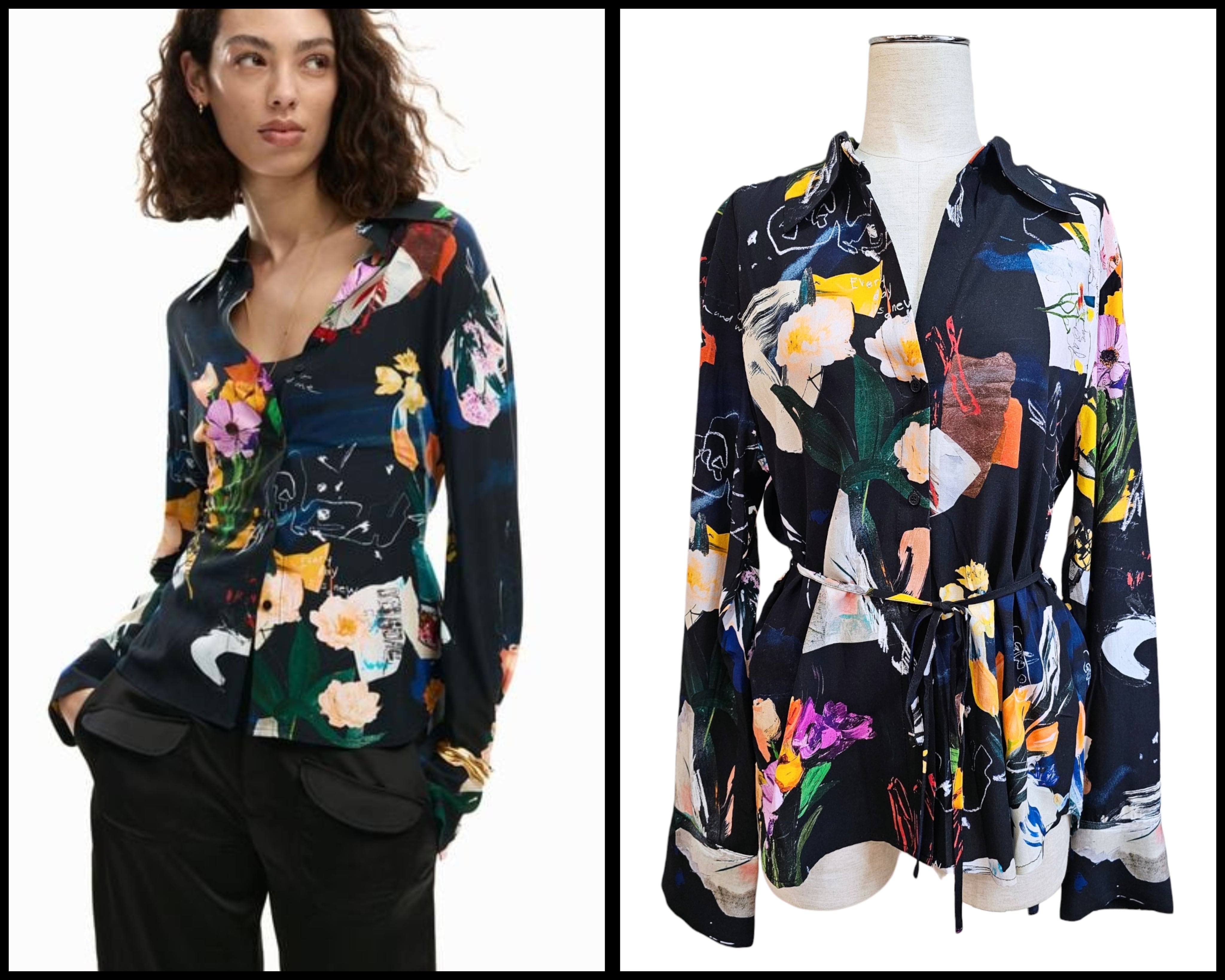 ブラックベースにカラフルなモチーフをコラージュ風にプリントしたデザインの華やかで、カッコいいシャツです★