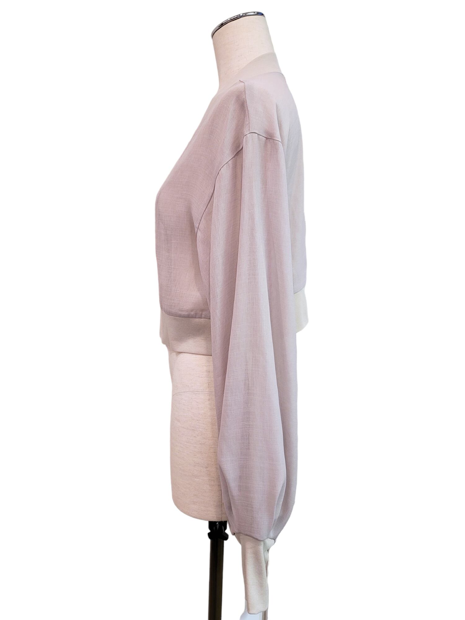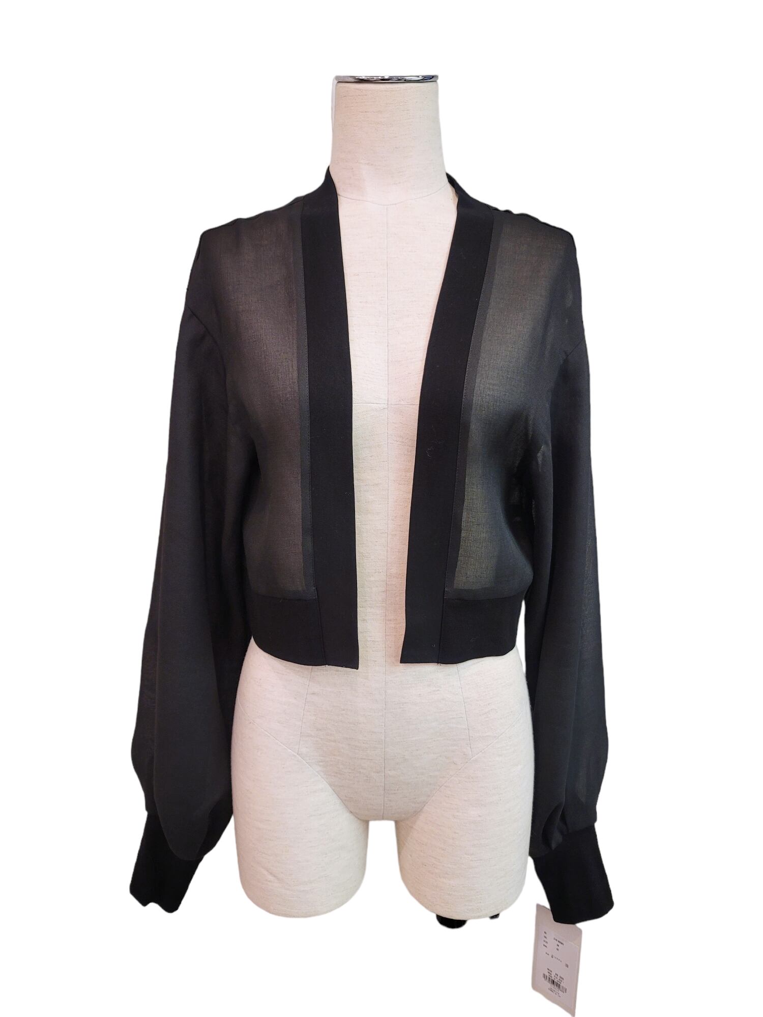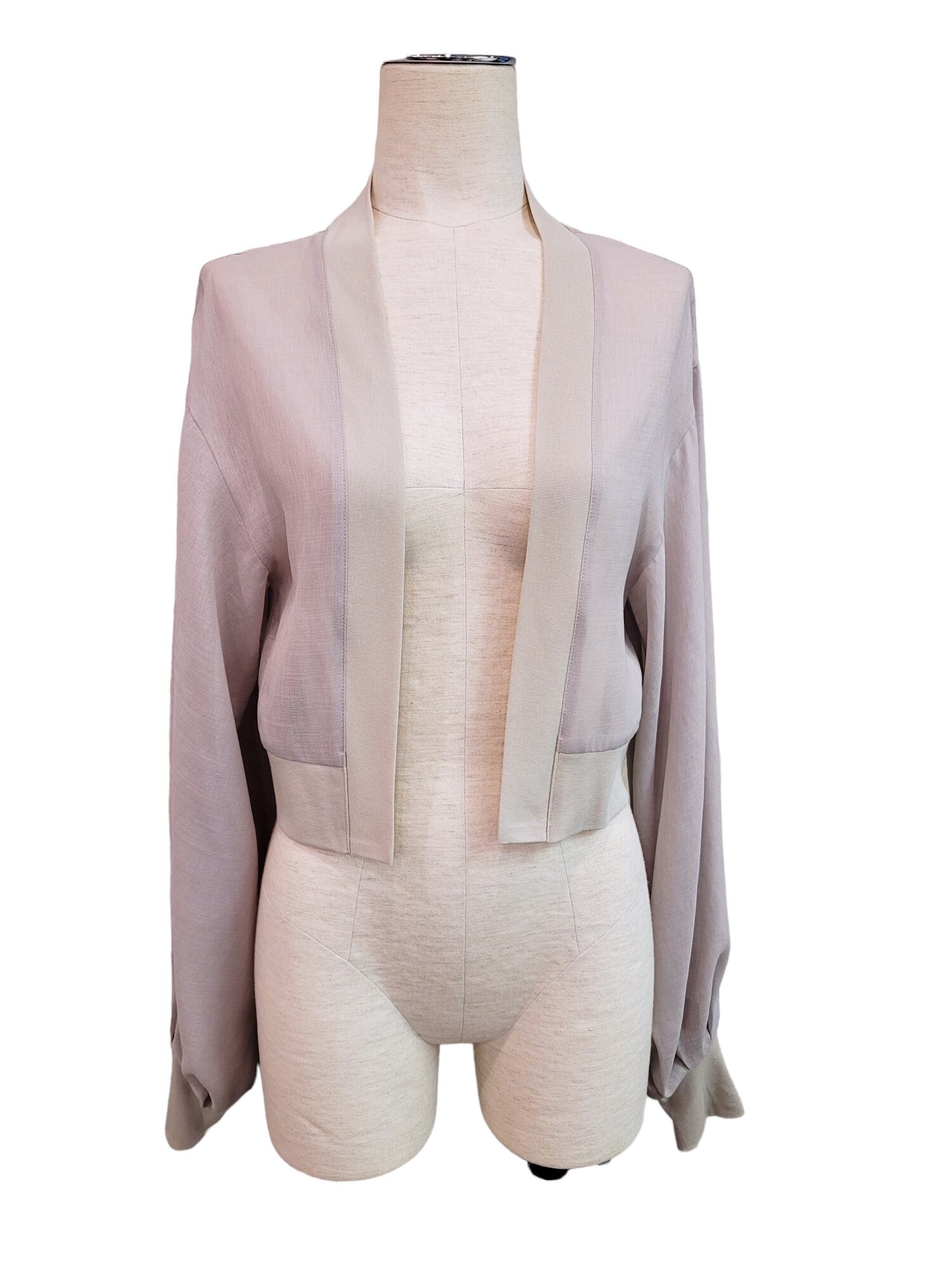 リネンライクなサラッとした生地感をポリエステルと綿で表現した、人気のシアーな透け感のボレロです。