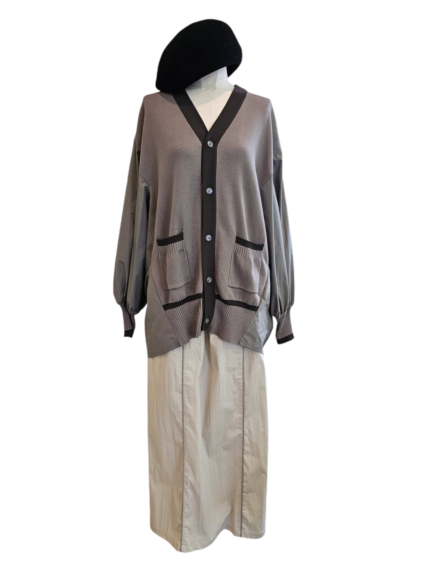 とても軽い着心地で、ニットと薄いタフタ生地のドッキングになっています。